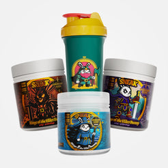 Includes two 40-serving RINGS OF THE ELDER BUNNY Energy tubs, one 30-serving ELDERBLIGHT ELIXIR Hydrate tub, and a shaker.